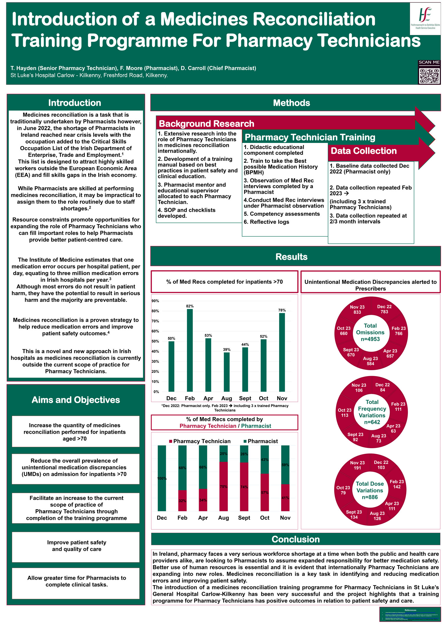 The Irish Medication Safety Network (ISMN) partnered with their colleagues in TIMSNI (Transforming Medication Safety Northern Ireland) to present the First All-Island Medication Safety Conference in Dublin Castle on Friday 29th November. Tara Hayden, Pharmacy Technician, NAHPT Vice-president and EAPT colleague was the overall winner of the best poster competition for her poster on medicines reconciliation. This was an amazing achievement for Tara as there were 104 posters on display and is an acknowledgment of all the hard work she has done. It was also a great achievement for a pharmacy technician and it highlights the important role pharmacy technicians can plan to help improve patient safety.